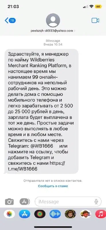 Всем привет. Вот такие сообщения я ищу. Это мошенники. Если вы получили подобное предложение о работе в озон или амазон или вб, пожалуйста присылайте их мне. У меня две цели.