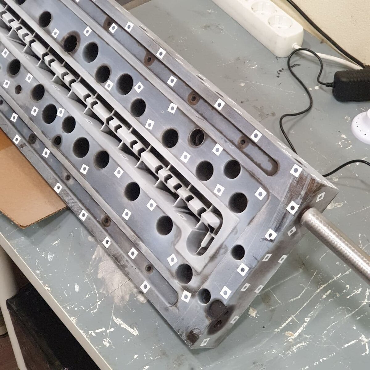 Выполнили сканирование и перевод в твёрдое тело плиты термопластавтомата. Для сканирования использовали 3D сканер Volume Technologies VT MINI V2, дальнейший реверс выполнили специалисты компании.