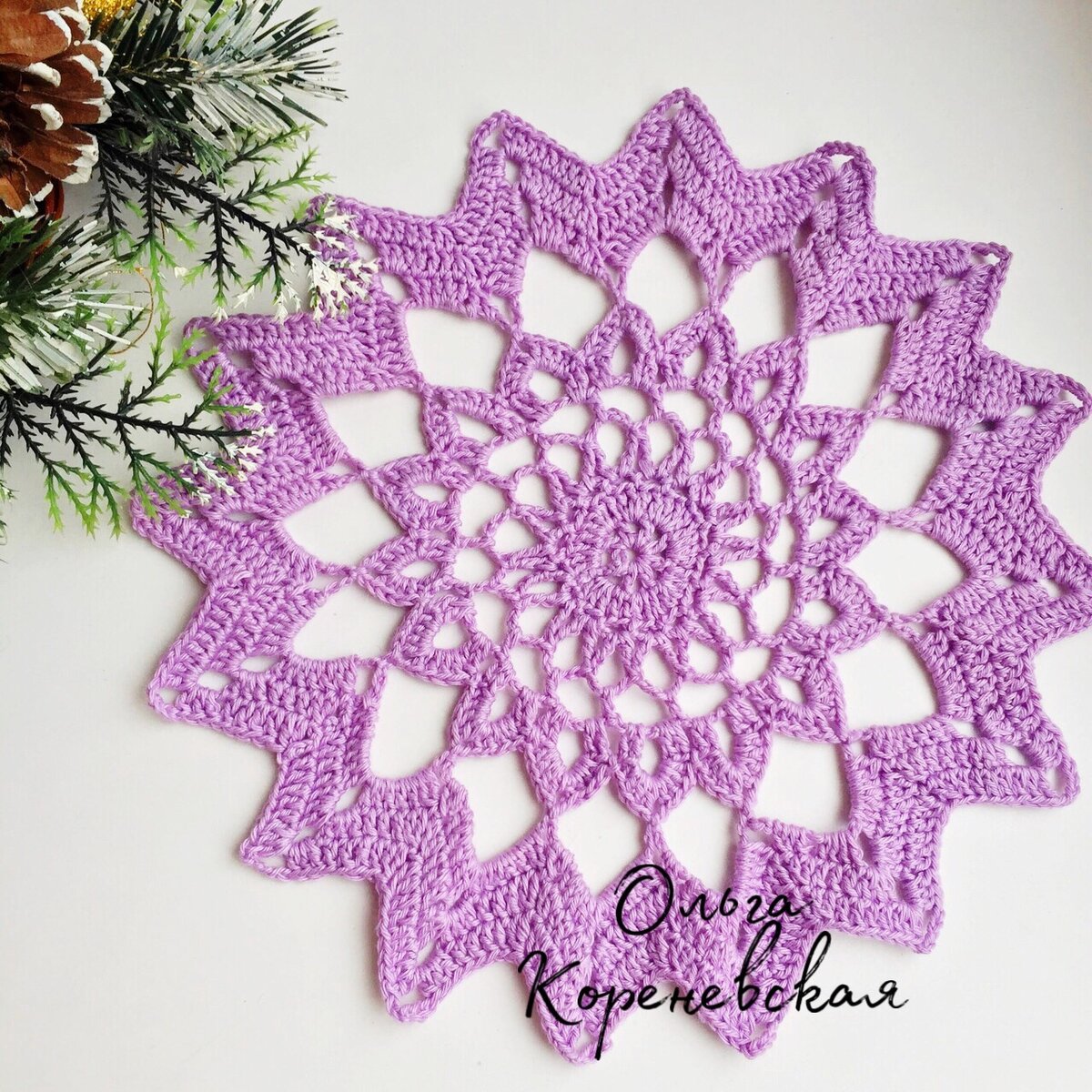 Всем привет! И особая благодарность каждому, кто поддерживает меня лайками и комментариями! Сегодня я планировала выложить для вас большую статью о том, как я ищу заказы на авито. И с какими трудностями там сталкиваюсь. Но что-то пошло не так :)) Когда я искала фото для статьи, наткнулась на давно сохраненные схемы интерьерных салфеточек. И захотелось мне их сегодня выложить. Я вязала не все из них, некоторые схемы будут без фото. Но по ним, в принципе, можно представить конечный результат. Итак, вот схемы: И теперь уже с моими работами. Наверное, эту схему стоило выложить перед новым годом, но я про нее забыла. Это очень интересная салфетка-снежинка. Но пусть будет на будущее. А эта была моя первая салфетка: Следующие две салфетки можно вязать разных размеров. Вообще они предполагают комплект - большая салфетка и несколько маленьких салфеток-подставок. Я вязала именно подставки. Здесь я связала 11 рядов: А здесь - 13: Ну и завершающая схема - большая ажурная салфетка, одна из моих люб