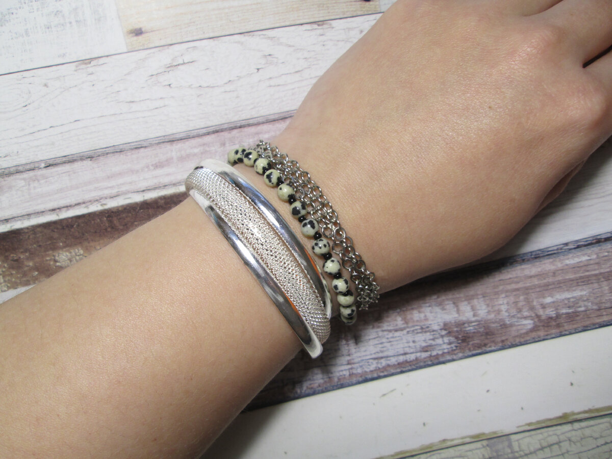 Сегодня мы хотим вам рассказать о тонких браслетах из натуральных камней SwetSweetJewelry. Толщина браслета всего 4 миллиметра. Это отличный вариант для комбинирования с другими украшениями и создания многослойности. Размерный ряд браслетов варьируется от 16 до 19 см, плюс цепочка-удлинение 5 см, поэтому можно не переживать из-за длины, подойдёт на любую ширину запястья до 22-24 см. Фурнитура серебристого цвета из стального сплава и замочек карабин-лобстер. Бусины для создания наших браслетов с месторождений Африки, Китая, Индии и России. Больше всего покупателям этих браслетов нравятся такие минералы как аргиллит, далматиновая яшма и амазонит. Аргиллит или, как его ещё называют, зебровый камень – это камнеподобная глинистая горная порода. Зебровым его называют из-за контрастной окраски. В наших изделиях мы используем минерал с сочетанием цветов розового или пудрового с прожилками терракотового и серого, но в природе этот камень имеет и другие оттенки. В зависимости от того, какой имен