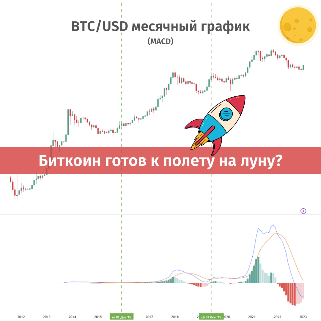 Эти 3 индикатора подают нам важные сигналы. Ранее, в истории Биткоина они служили предвестниками сильного роста цены. Первый индикатор MACD. Гистограмма MACD, которая показывает направление тренда, скоро приблизится к нулевой линии на месячном графике. Когда гистограмма MACD пересекает нулевую линию, линия MACD и сигнальная линия также пересекаются. Пересечение гистограммой нулевой линии снизу вверх говорит о том, что направление тренда меняется. Пересечение линией MACD сигнальной линии снизу вверху является бычьим сигналом, особенно в момент, когда гистограмма MACD находится под нулевой линией (рис. 1-4). Второй индикатор RSI. На месячном графике RSI почти завершено образование бычьего сигнала. В истории Биткоина такой сигнал был образован 2 раза, в 2015 и в 2019 году. Сигнал заключается в пересечении линией RSI снизу вверх 14-дневной скользящей средней линии, что дополнительно сопровождалось ранее пересечением средней линии снизу вверх. Дополнительное подтверждение также должно проис