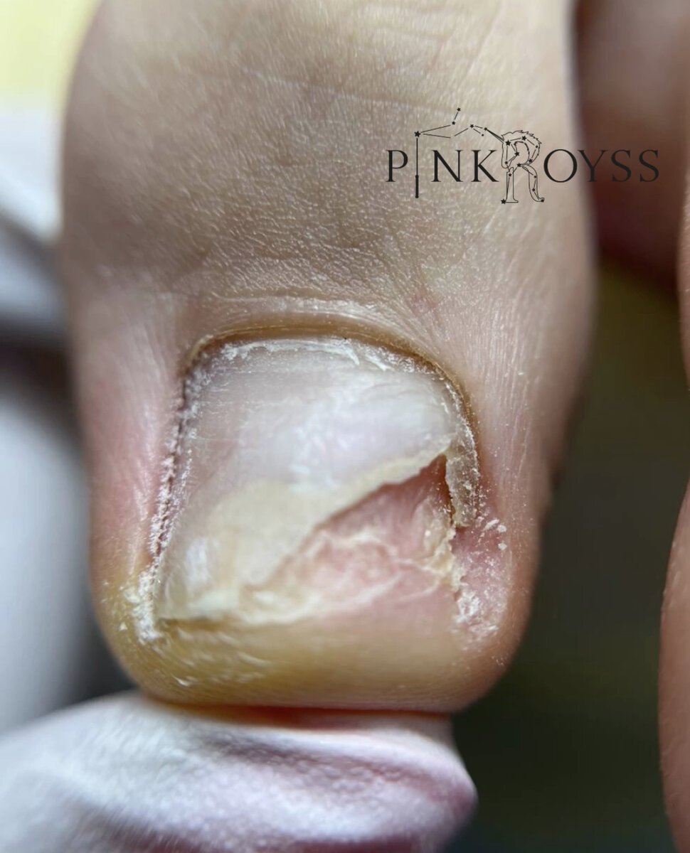 Как всегда везде есть свою нюансы. В протезировании ногтей их конечно много, но не об этом. Сегодня хочу показать вам динамику очаровательной девушки, назовем ее Катя, которая пришла к нам в декабре в качестве модели на курс по протезированию ногтей. Катя, молодая, красивая девушка, которая очень переживала из-за ногтя на своем большом пальце. Почему переживала? Потому что уронила себе на палец сковородку, а дальше все как в тумане, призналась нам Катерина. Сковородку она уронила года два назад и с тех пор ноготь все время отслаивался и ломался. Обычная бытовая история, да иногда мы роняем себе тяжелые предметы на пальцы ног, и да от этого могут страдать наши ногти. В принципе если ничего не делать, то ноготь со временем сам отпадает и потом уже срастает свой и красивый. Но… конечно же есть нюансы. Самый большой и главный нюанс- это правильно ли по размеру у вас подобрана обувь? Да,да. Мы каждый раз говорим об одном и том же, и каждый раз слышим от наших клиентов или моделей, чт