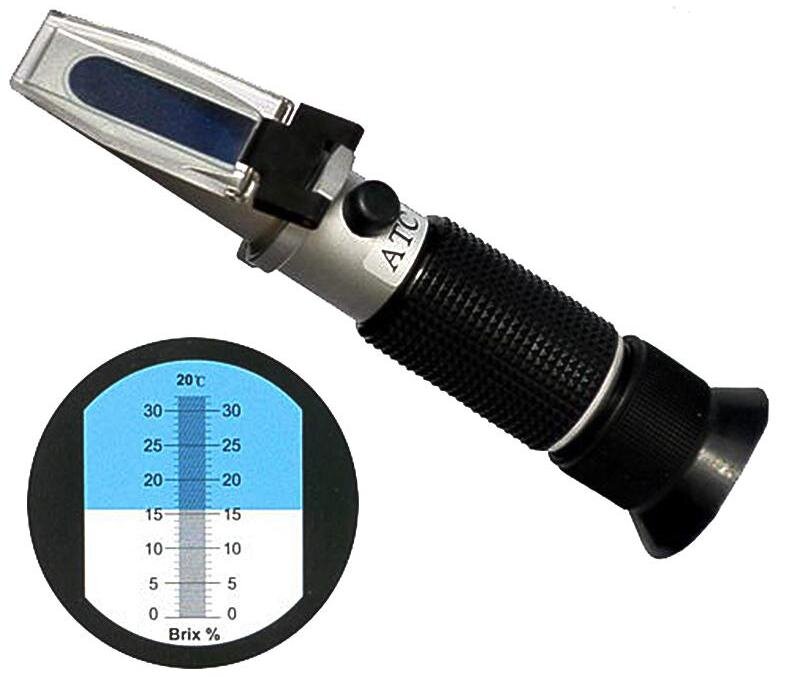 Рефрактометр - это отличный инструмент, который позволяет пивовару определить плотность сусла всего с одной капли. Вам не нужно будет расходовать каждый раз по 150-200 мл. сусла, как это делается при измерении ареометром. Капля сусла опускается на поверхность линзы, а прозрачная пластина прижимается сверху, равномерно распределяя жидкость по всей линзе. Затем рефрактометр поднимается к источнику света, и вы смотрите в него, наподобие телескопа. На фото представлен самый дешевый рефрактометр сделанный в Китае. С ним вы получите то, за что платите. Но так же бывают дорогие цифровые рефрактометры, которые более точно определяют и выводят на циферблате свои показания. Есть некоторые рекомендации для правильного использования рефрактометра - в противном случае он может разочаровать вас в работе: Рефрактометры и сусло: Удобство рефрактометров зависит от цены, так как устройство рефрактометров не такое простое, когда дело доходит до измерения сусла. Рефрактометры измеряют угол преломления с