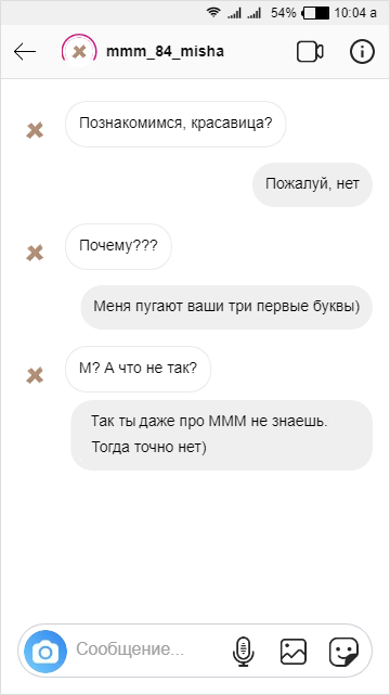 Социальные сети - идеальное место для знакомства. Можно спокойно обдумать первое сообщение. чуть лучше узнать человека по его страничке/фотографиям. Кажется, что соцсети просто созданы для поиска второй половинки, нахождения новых друзей. Но это не всегда так. Порой девушкам приходят странные и неловкие сообщения от незнакомых мужчин. Одни пытаются коряво подкатить, другие сразу берут быка за рога: от "поехали кататься" и до "почему еще не замужем, але" в целом разгон небольшой. Лично мне не всегда нравится, когда пытаются познакомиться, особенно если это сделано в наглой манере, без уважения личного пространства. Парень, который ничего не знает об МММ - либо жил в вакууме, либо не особо любознательный. И то, и то не сильно хорошие качества. Иногда при знакомстве срабатывает эффект ми-ми-ми. Милая аватарка может добавить очков претенденту на сердце красавицы. Маги и колдуны - интересная тема, если только не углубляться в это. Платные сеансы на первом свидании, избавление от сглаза и пр