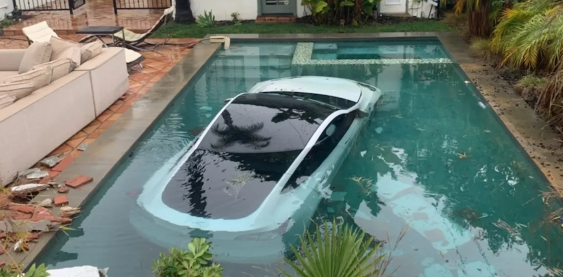 Автомобили Tesla имеют репутацию высоких стандартов безопасности и даже недавно сыграли важную роль в спасении жизней четырех пассажиров, путешествовавших в транспортном средстве, которое упало с 80 метровой скалы в Калифорнии. Всего неделю спустя другой автомобиль Tesla попал в другую аварию в том же штате США, хотя оба инцидента, по-видимому, являются результатом человеческой ошибки. Согласно отчету полиции, в машине ехали три пассажира, когда женщина-водитель случайно нажала на акселератор вместо тормоза. Это отправило машину через стену дома на бульваре Западная Калифорния прямо во двор частного дома и далее в бассейн. Владелец присутствовал внутри дома, и был очень удивлен, когда увидел электромобиль в бассейне. Буквально за несколько мгновений до того как Тесла стал погружаться на дно, сотрудники близлежащего дошкольного учреждения поспешили на помощь и помогли эвакуироваться из автомобиля двум женщинам и ребенку. Сотрудники полиции и пожарной службы прибыли на место происшествия