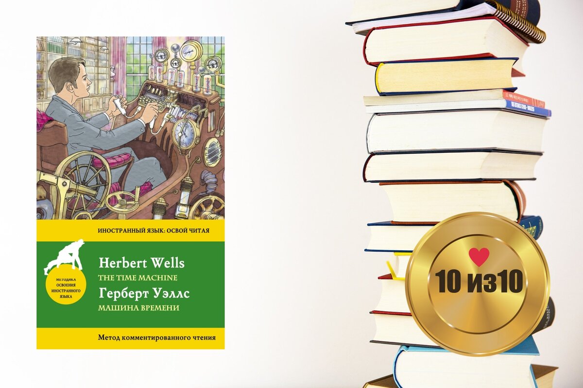 Сначала требуется небольшое пояснение. Книга читалась на английском языке по методу комментированного чтения. Иллюстрация демонстрирует как выглядит такая книга. В конце немного будет сказано именно об особенностях подобного чтения, но рецензия будет непосредственно на саму книгу, а не на книгу как пособие по изучению английского языка. "Машина времени" Герберта Уэллса как любая хорошая фантастическая книга исследует тенденции настоящего (в котором находится автор) и проводит линии в будущее. Уэллс размышляет о том, куда может продвинуться человечество, идя по тому пути, по которому оно идет.
