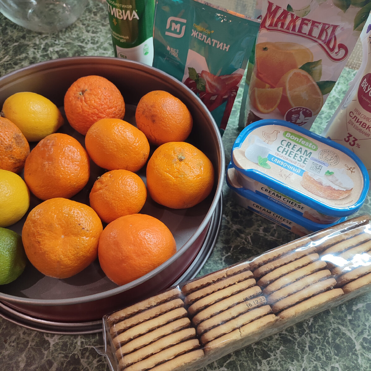 Я около года назад впервые попробовала чизкейк с малиной и мне показалось это просто божественным тортом на вкус. А там где всё вкусно обычно всё сложно. Мое мнение. Но я ошиблась. Оказалось чизекейк прост в приготовлении, как вареная картошка. Единственная загвоздка: от момента начала готовки до подачи должно пройти не менее 4 часов. В готовке есть три этапа, когда торт отдыхает в холодильнике: 15 минут, 2 часа и 2 часа. Я буду рассказывать сегодня, как я готовила чизкейк с мандаринами. Ингридиентов не много, но важно, чтобы они были качественными. Ведь от них зависит вкус всего десерта. Форму лучше брать диаметром 18-20 см. У меня оказалась 27 см, поэтому пришлось импровизировать с количеством продуктов, но в рецепте укажу стандартный набор. Первым делом заливаю весь желатин водой и оставляю набухать. Желатин нужен будет для молочного слоя и для верхнего с украшением. Печенье измельчаем. Я использовала блендер. Кстати я сегодня разбила свою чашу измельчителя, уронив на пол