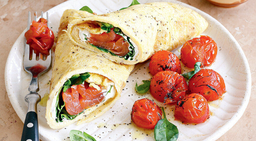 Здоровая альтернатива тому, что заворачивают в тортильи. Готовить омлет, конечно, сложнее и дольше, чем просто достать подрумяненную лепешку из упаковки, но результат стоит того. Ингредиенты: 4 яйца 250 г помидоров черри 100 г греческого йогурта 100 г форели горячего копчения 40 г шпината 20 г сливочного масла 1 ст. л. оливкового масла свежемолотый черный перец соль Пошаговый рецепт приготовления Реклама. АО "Тандер". https://magnit.ru ______________ форель, йогурт, яичный ролл, шпинат, черри, Мой Магнит, Мой Магнит январь, Клуб про здоровье