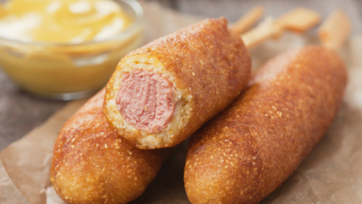 - Разогреваем фритюр до 150-170 градусов, обжариваем сосиски в тесте, вращая шпажки, чтобы корн-доги равномерно зарумянились.