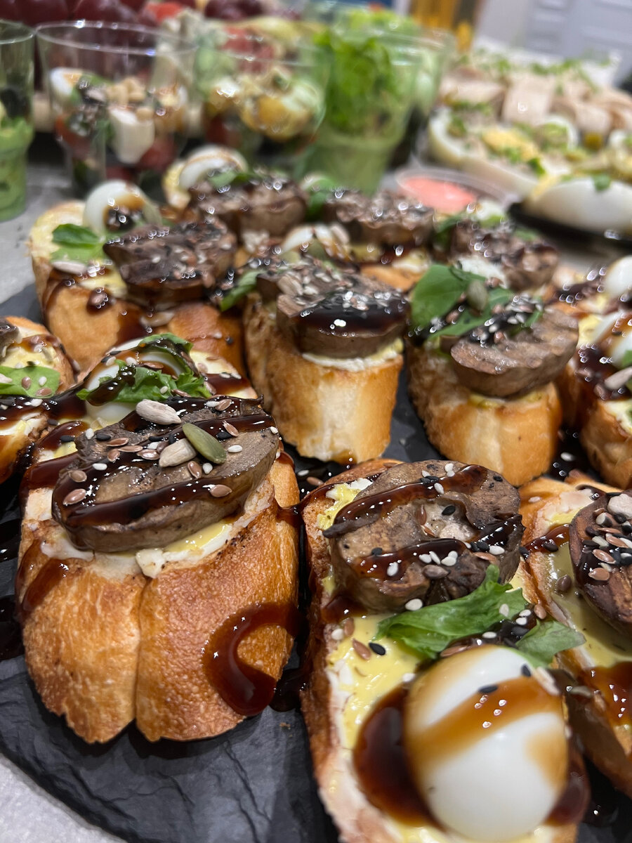 Что нам понадобится: Самое основное что вы должны сделать - это нарезать багет наискось и поджарить его. В идеале на гриле . Без идеалов на сухой сковороде. Далее на каждый наносим творожный сыр. Грибы нарезаем вдоль, маринуем на 20 минут соевый соус плюс майонез и тоже в идеале на гриль. Вообщем поджариваем. Брускетта с шампиньоном , перепелиным яйцом, лист салата , соус бальзамик, смесь семян . Позже сделаю пост какой смесью семян пользуюсь я и на каком сайте покупаю. Брускетта с беконом на пасте из вяленых помидор со свежим помидорчиком и горошком. Брускетта с форелью и свежим огурцом. нарежте мелко как на фото так удобнее кусать . Украсим пророщенным горошком . У меня ещё много всего вкусного и полезного. Ведь я только осваиваю дзен, а еды накопилось в галерее на три года вперед . Так что подписывайтесь и наслаждайтесь. Если статья была полезна - благодарю за 👍 И обязательно пишите если воспользовались рецептом в комментариях - как вам было вкусно.