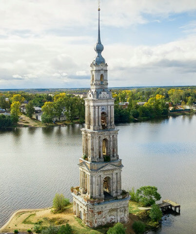 Земля здесь является «резервуаром» с пониженным давлением для «слива» излишней энергии, подаваемой на каркас здания при запуске. Поэтому, закрученная подаваемая энергия поднимается по трубе, формируя спиральную траекторию трассы этой энергии по трубе. И после перехода на поверхность шарика и далее на луковичную поверхность кровли колокольни, траектория также будет спиральной. И тогда процесс становится устойчивым.