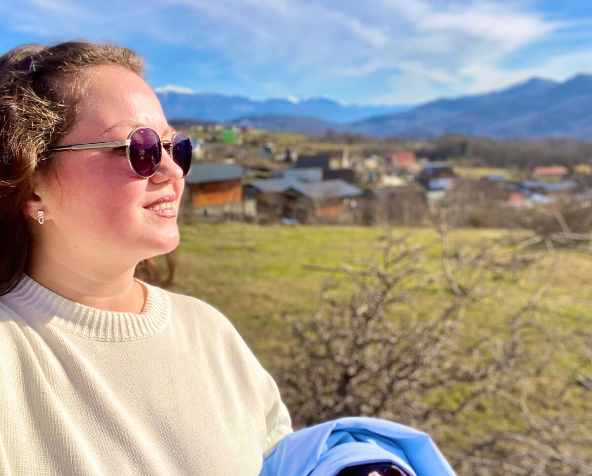 Сознательно не взяв с собой монопод для телефона, долго пыталась сделать красивое фото с собой на фоне гор, но вышло что вышло, как говорится. Места здесь действительно красивые, стоило пощекотать себе нервишки в лесу, чтобы все это увидеть.