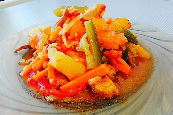 Мой домашний рецепт Азу по-татарски, с мясом, картофелем и солеными огурцами.