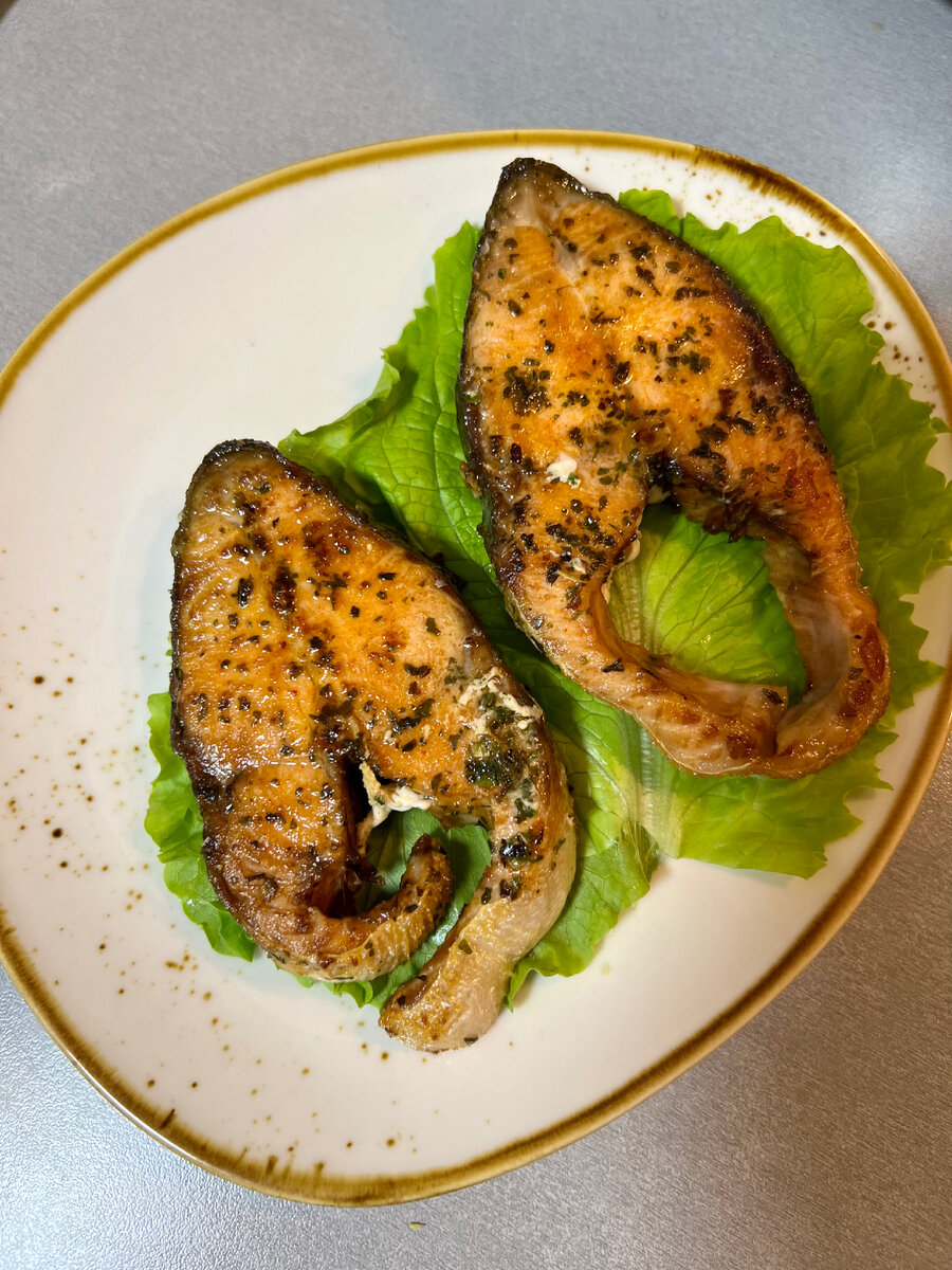 Вообще, к рыбе я весьма равнодушна, но в последнее время мне очень полюбились любые виды красной рыбы, и горбуша не стала исключением. Для приготовления горбуши на сковороде вам не потребуется много затрат и усилий, а результат вас порадует. Рыбка получается очень нежной, сочной и ароматной. На гарнир подойдут овощи приготовленные на пару или отварные. Прекрасный вариант для тех, кто следит за фигурой. Ингредиенты: Приготовление: Первым делом нужно подготовить рыбу. Если у вас целая тушка, то сначала очистите её от чешуи, удалите внутренности. Рыбу нарежьте на стейки толщиной около 2х-3х сантиметров. Если у вас покупные замороженные кусочки, то выньте их заранее из морозильной камеры и разморозьте. Каждый кусочек посолите с двух сторон, посыпьте красным молотым перцем ( вместо красного перца также хорошо подойдет паприка). Посыпьте рыбу кавказскими травами ( можно вместо трав использовать сухой розмарин). Оставьте таким образом горбушу на 10-15 минут промариноваться. В сковороду с толс