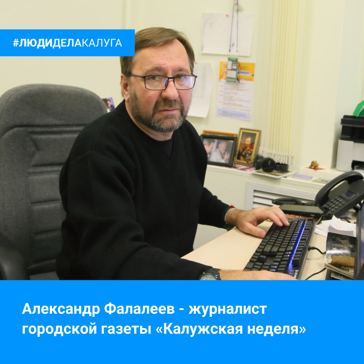 Александр Фалалеев стоял у истоков создания городской газеты. Тогда она называлась «Калуга вечерняя». Более 30 лет Александр Александрович посвятил любимому делу. Сегодня он, как и прежде, лёгок на подъём. Работает одним из ведущих журналистов газеты «Калужская неделя». С удовольствием делится опытом с молодыми коллегами. Знаю, что многие читатели с нетерпением ждут выхода еженедельных материалов Александра о спорте и здоровом образе жизни. В прошлом году его репортаж «Матч легенд» занял 3 место во Всероссийском конкурсе «Спорт – норма жизни». Сегодня – День российской печати! Поздравляю всех сотрудников средств массовой информации Калуги с праздником! Желаю вам ярких и запоминающихся материалов, новых побед, удачи, понимания и поддержки людей, для которых вы трудитесь!