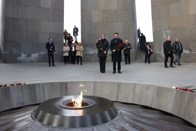 Спикеры парламентов Армении и Франции Ален Симонян и Яэль Браун-Пиве посетили мемориальный комплекс «Цицернакаберд», сообщает пресс-служба НС. Они возложили цветы к Вечному огню, увековечивающему память жертв Геноцида армян, и молчанием почтили память святых мучеников. Затем французская делегация во главе со спикерами парламентов двух стран побывала в Музее-институте Геноцида армян, где ознакомилась с документами, подтверждающими Геноцид. Французская делегация парламентариев прибыла в Ереван 12 января. В ходе двухдневного визита французская делегация встретится с премьер-министром Армении Николом Пашиняном и другими должностными лицами, а также проведет встречу в расширенном составе с депутатами НС Армении. В рамках визита запланирована совместная пресс-конференция Браун-Пиве и Симоняна. Читай больше новостей на нашем сайте Новости Армении в Telegram