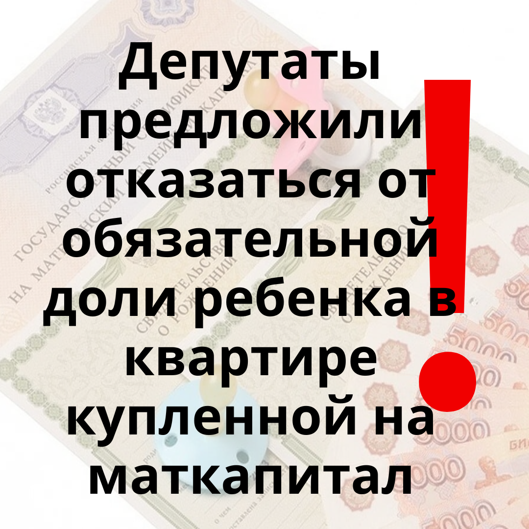 Депутаты предложили пересмотреть вопрос обязательной доли ребенка в квартире, при покупке которой использовались средства материнского капитала. Первый заместитель председателя комитета Госдумы по вопросам семьи, женщин и детей предложила: Депутат предполагает, что родители не будут преднамеренно обделять своего ребенка и не станут пытаться его обмануть, поэтому от выделения долей можно будет отказаться. Так же депутат заявила, что органы опеки вообще не должны участвовать в распределении долей, которые принадлежат детям. Она предлагает полностью отдать право решения этого вопроса родителям.