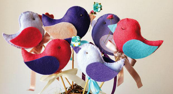 Создать дома по-настоящему весеннее настроение, украсить дом к детскому празднику вам помогут забавные разноцветные птички из фетра, сделанные своими руками. Разноцветных птичек можно посадить на деревянные палочки, украсив горшок с цветами, а можно собрать в красивые гирлянды и повесить в дверные проемы – поделки из фетра приживутся везде. Вам понадобятся: Рисуем на бумаге и вырезаем шаблоны – туловище, крылышки и клюв. Прикладываем шаблоны к кусочкам фетра разных цветов обводим их и по контурам вырезаем заготовки. Шьем туловище, петельным швом соединяя между собой две заготовки. Оставляем небольшое отверстие на месте клюва. Плюс прорезь в районе хвостика – чтобы наполнить туловище синтепоном. Вшиваем клюв. Набиваем поделку из фетра синтепоном. Петельным швом зашиваем отверстие. Используя небольшое количество клея, крепим крылышко. Пришиваем глазки из бисера. Птичка готова к полету!