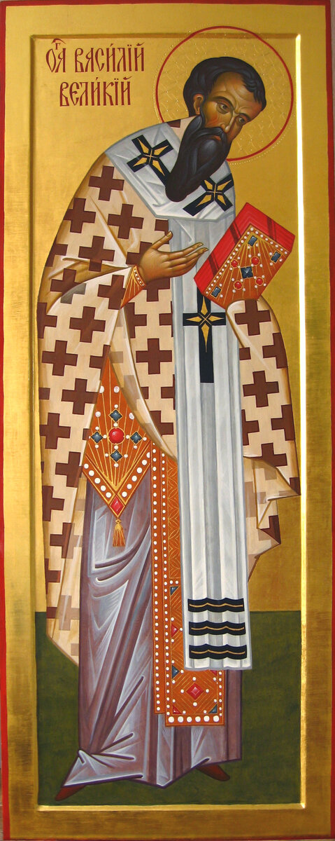 О великий во иерарсех, вселенныя учителю богомудрый, преблаженне отче Василие! Велия подвиги и труды твоя, яже во славу Святыя Церкве совершил еси: ты исповедник твердый и светильник веры Христовы на земли был еси, светом Боговедения верныя озаряяй, ложная учения попаляяй и всему миру слово спасительныя истины возвещаяй. Ныне же, велие на Небесех имеяй дерзновение ко Святей Троице, помози нам, со смирением к тебе припадающим, твердо и неизменно святую Православную веру до конца жития нашего сохранити, от маловерия же, сомнений и колебания в вере соблюди, да не прельщени будем богопротивных и душепагубных учений словесами. Дух ревности святыя, еюже ты пламенел еси, о преславный Церкве Христовы пастырю, возгрей предстательством твоим и в нас, ихже Христос постави быти пастырями, да всеусердно просвещаем и утверждаем в правей вере словесное стадо Христово. Умоли Господа, да возвысится страна наша, и да дарует всему народу нашему здравие, долгоденствие и во всем благое поспешение. Испроси, о милосердый святителю, от Отца светов и всем, всякий дар коемуждо благопотребен: младенцем благое в страсе Божием возрастание, юным целомудрие, старым и немощным укрепление, скорбящим утешение, недугующим исцеление, заблуждшим вразумление и исправление, обидимым заступление, сиротам и вдовицам защищение, искушаемым благодатное поможение, отшедшим от сего временнаго жития отцем и братиям нашим блаженное упокоение. Ей, святче Божий, призри милостиво от обителей Горних на нас, смиренных, многими соблазнами и напастьми обуреваемых, и к земли приверженных возведи к высоте Небесней. Преподаждь нам, преблагий отче, твое архипастырское и святое благословение, да, оным осеняемии, в сие новое лето и во все прочее время живота нашего в мире, покаянии и послушании Святей Православней Церкви поживем, заповеди Христовы усердно творяще, подвигом добрым веры подвизающеся, и тако Царствия Небеснаго достигнем, идеже с тобою и всеми святыми сподоби Троицу Святую, Единосущную и Нераздельную пети и славити во веки веков. Аминь.