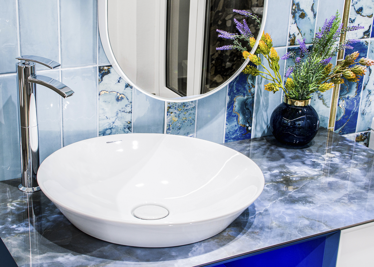 » Можно не ограничивать фантазию и выбрать столешницу в современную ванную и в классику, ар-деко и лофт. С разной фактурой: матовая, глянец, под дерево или камня, бетон или железо. В едином стиле с плиткой или керамогранитом.