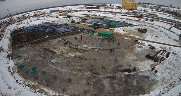 Строительный объект расположен на Стрелке. «На сегодняшний день проведена почти половина работ по армированию фундамента, и на 30 процентов залита фундаментная плита. До конца текущей недели будет залито 50 процентов фундаментной плиты Ледового дворца. Работы на объекте велись все новогодние праздники и в выходные дни. На площадке задействовано более 370 человек и девять единиц техники. Работы идут в соответствии с графиком», - рассказал руководитель Корпорации развития Нижегородской области Игорь Ищенко. Известно, что современные технологии позволяют заливать основание при отрицательных температурах ниже -30°С.