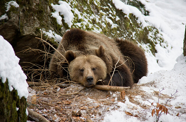Винни, хозяин дома, заглянул под террасу и сначала не поверил своим глазам — в темноте лежал толстый черный медведь. Зверь уютно устроился на подстилке из листьев и брезента и, судя по всему, намеревался провести здесь всю зиму.