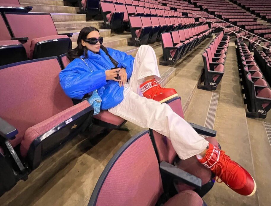 Первой моду на луноходы вернула певица Дуа Липа. Она появлялась не раз в ботинках разных цветов и брендов.