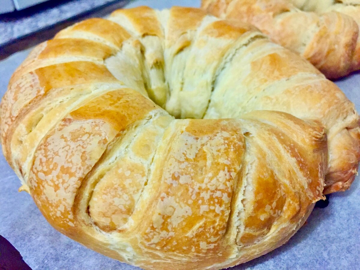 Слоеные кольца с бананом - простой, быстрый и дешевый десерт. Готовое слоеное тесто всегда поможет устроить чаепитие, даже чайник не успеет вскипеть, а к столу уже манит румяная и аппетитная выпечка. Примерно год назад мне попался интересный кулинарный лайфхак: как завернуть целый банан в тесто, чтобы получилось колечко. И теперь я стараюсь вовремя пополнять запас слоеного теста (и дрожжевого, и без дрожжей) - это палочка-выручалочка для хозяек, ждущих гостей, и беспроигрышный вариант для юных кулинаров. У всех получится и каждому понравится. ✔️Как испечь слоеные кольца с бананами Понадобится: упаковка слоеного теста (2 пласта), бананы - 2 шт., шоколад по желанию Раскатываем, двигая скалку в одном направлении - так слои не перемешаются. На край теста кладем очищенный банан и разрезаем на кусочки (но форму банана сохраняем). Вкусно и в горячем виде, и когда остынет. Десерт из разряда универсальных: и на каждый день, и на праздник. Главное, так легко готовится, и так привлекательно выгл