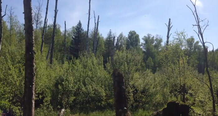 Всем привет. Продолжаю рубрику "Странные явления, которые происходили со мной". Итак - описываю: пересекал я одно болото, достаточно длинное - около 7 км. Шел по самой кромке, вглубь не лез. Время - часов 10 утра, погода солнечная, ветра нет. Иду значит и сознанием ощущаю, что-то не то... Вроде день, а все равно жутковато. Да и место более-менее открытое. И тут я понимаю, что перестал слышать лягушек, хор которых сопровождал меня всю дорогу. Хм... Списал на жару - иду дальше... Болото то самое, что на фото. Очень много сухих стволов деревьев, соответственно валяется много веток и прочее. И тут возникает ощущение, что за мной кто-то идет. Резко поворачиваюсь - нет никого. Пошел адреналинчик в кровь... Решил проверить - иду, под ногами хрустит сухая трава и ветки. Резко останавливаюсь и слышу за спиной чуть слышное - хрусть... Подловил! Не успел вовремя остановится! Стало так не очень на душе... Думал зверь какой - поорал маленько. Обычно этого хватает. Двинулся дальше - ощущение преслед