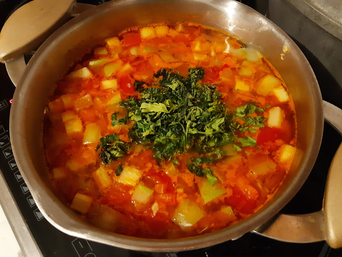Суп варится быстро. Вроде и овощной, но едят с удовольствием все, даже не любители кабачков, перцев и пр.