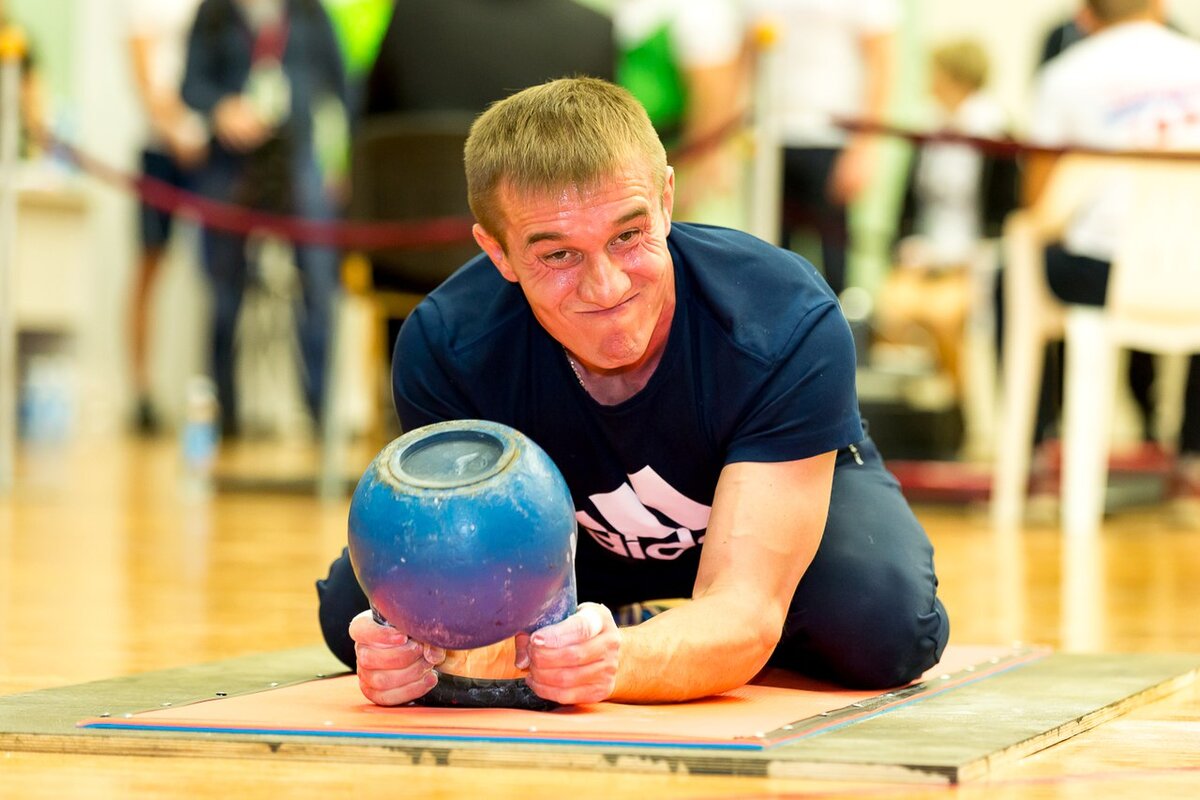 Продолжаем рассматривать интересные упражнения с гирей для разнообразия ваших тренировок и включения соревновательных моментов в них (на основе материала книги «Упражнения с весовыми гирями» 1928 года). Вставание с гирей из приседа. Именно так автор книги считает правильнее называть следующее упражнение. Исходное положение спортсмена – полный присед. Гирю берем за дужку за своей спиной. Необходимо встать, разгибая только колени, руки при этом остаются прямыми. Подъем выполняется на носках, но если баланс удерживать трудно, то первое время можно стоять на полной стопе. Если выполняете упражнение «на разы», то, вернувшись в исходное положение, гирю на пол ставить не надо, зафиксируйте её на 4-5 см от пола, а затем сделайте следующее распрямление коленей. И не стоит садиться на ручку гири 😉 Притягивание гири за дужку. Это сложное упражнение. Исходное положение – рука с гирей опущена вдоль бедра, запястье выпрямлено, локоть прижат к ребрам. Не отводя локтя спортсмену необходимо притянут