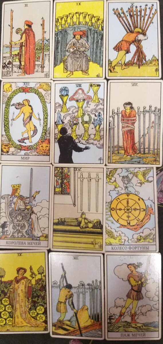 Карты свидетельствуют о неблагоприятной судьбе. Планам не судьба осуществиться. А может просто пока не время. В этот период Вам необходимо быть осторожными. Фортуна пока отвернулась от Вас, поэтому не стоит надеяться на везение. Также карты могут говорить о том, что в Вашей жизни пока не будет каких-либо глобальных перемен. В Вашей жизни будет много непредсказуемых ситуаций. Карты говорят об отношениях, в которых имеется сарказм, обман, взаимное непонимание. Карты говорят о негативной и неприятной информации, о запущенной ситуации, которая происходит у Вас в семье. Но Вас больше всего интересует женатый мужчина, раз Вы открыли этот расклад, поэтому можете не сильно расстраиваться, так как вот тут все просто очень неожиданно. Скажу сразу, будущее у вас с ним есть. Но вот сейчас ситуация реально запущенная, очень плохо относитесь друг к другу. Притом оба. Его привлекает Ваше недоверие ему, так как, не доверяя ему, Вы показываете свой характер. Он видит, что Вы - не глупышка, которая