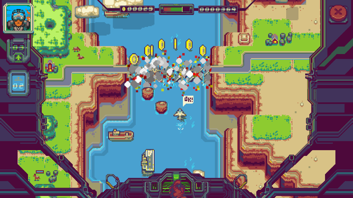Bridge Strike представляет собой нетривиальный скролл-шутер для iOS и Android от разработчика по имени Tomasz Rusak, в котором мы будем летать над просторными локациями и отстреливать вражескую боевую технику. Игра получила нетривиальный дизайн локаций, необычное графическое оформление а-ля Pixel-Art, неплохую анимацию в 8-битном стиле и аналогичное звуковое сопровождение. Игра получила два режима: Raid и Campaign. В первом мы должны преодолеть максимальное расстояние, а во втором нужно выполнить конкретную задачу, например, уничтожить указанное количество мостов или небольших лодочек. Основное отличие этой игры от большинства скролл-шутеров заключается в том, что здесь мы должны управлять и летательным аппаратом, и стрельбой. Причем огонь ведется не перманентно, а с небольшими интервалами. Если на видимой части локации выпущенные ранее ракеты не столкнулись с врагами или препятствием, новые выпустить не получится, пока первые не исчезнут за горизонтом. Кстати, события разворачиваются