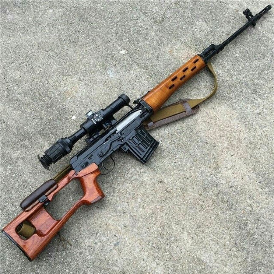 7,62-мм снайперская винтовка Драгунова (СВД,Индекс ГРАУ — 6В1) — советская самозаряднаяснайперская винтовка, разработанная в 1957—1963 годах группой конструкторов под руководством Евгения Драгунова и принятая на вооружение Советской Армии 3 июля 1963 года вместе с оптическим прицелом ПСО-1 Масса, кг:4,3 (СВД, ранний выпуск, без штык-ножа, с оптическим прицелом, неснаряжённым магазином и щекой приклада) 4,5 (СВД, современный вариант, без штык-ножа, с оптическим прицелом, неснаряжённым магазином и щекой приклада) 4,68 (СВДС с оптическим прицелом и неснаряженным магазином) 0,21 (магазин) 0,26 (штык-нож без ножен) 0,58 (прицел ПСО-1) Длина ствола, мм: 620 (СВД, общая) Патрон 7,62×54 мм R Калибр, мм 7,62 Принципы работы Поворотный затвор, отвод пороховых газов Начальная скорость пули, м/с: 830 (СВД) Прицельная дальность, м 1200 (открытый прицел) 1300 (оптический прицел)