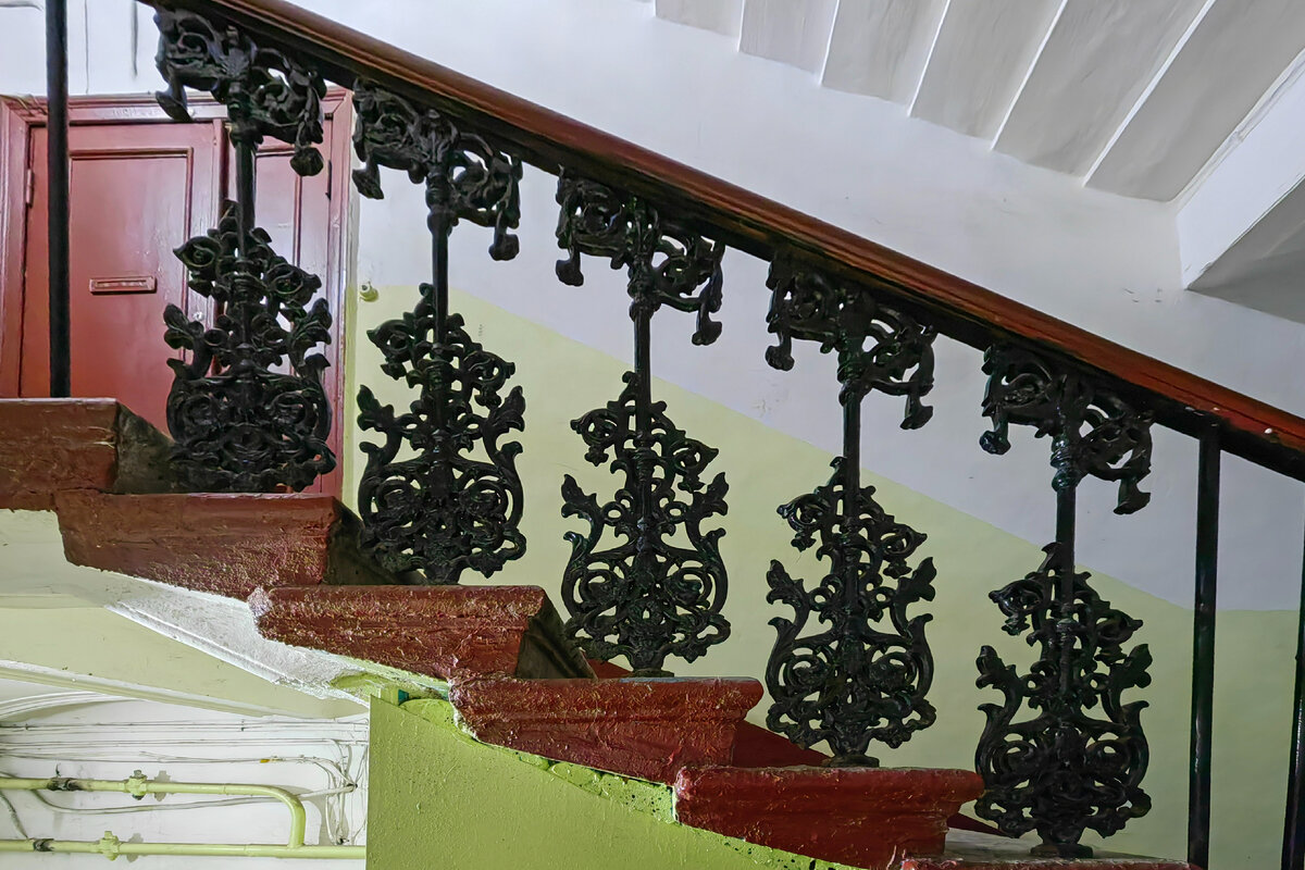 В апреле 2022 года я написал заметку в которой перечислил все увиденные мной когда-либо в Петербурге разновидности балясин, встреченные в парадных Северной столицы. В том списке у меня получилось 206 чугунных красавиц! Именно чугунных - прочие, например, бетонные, я не включал в список. В связи с стем, чтоб большинство таких произведений искусства в городе я осмотрел, то они мне практически перестали попадаться. И я уже их даже не показываю вам. Но вчера решил по пути заглянуть в одну из парадных, где находятся редкие экземпляры. И сделать небольшую заметку. В моей подборке они значатся под номером 170. На лестнице балясин осталось очень мало. Я насчитал всего лишь 8 штук! Они украшают только первый лестничный пролёт. Возможно, балясины были монтированы сюда из какого-то другого места так как на всех других этажах тоже имеются исторические балясины, но простые - в виде "палочек". Их в парадной подавляющее большинство (в центре кадра). Слева и справа - современные штырьки. В моей подбор