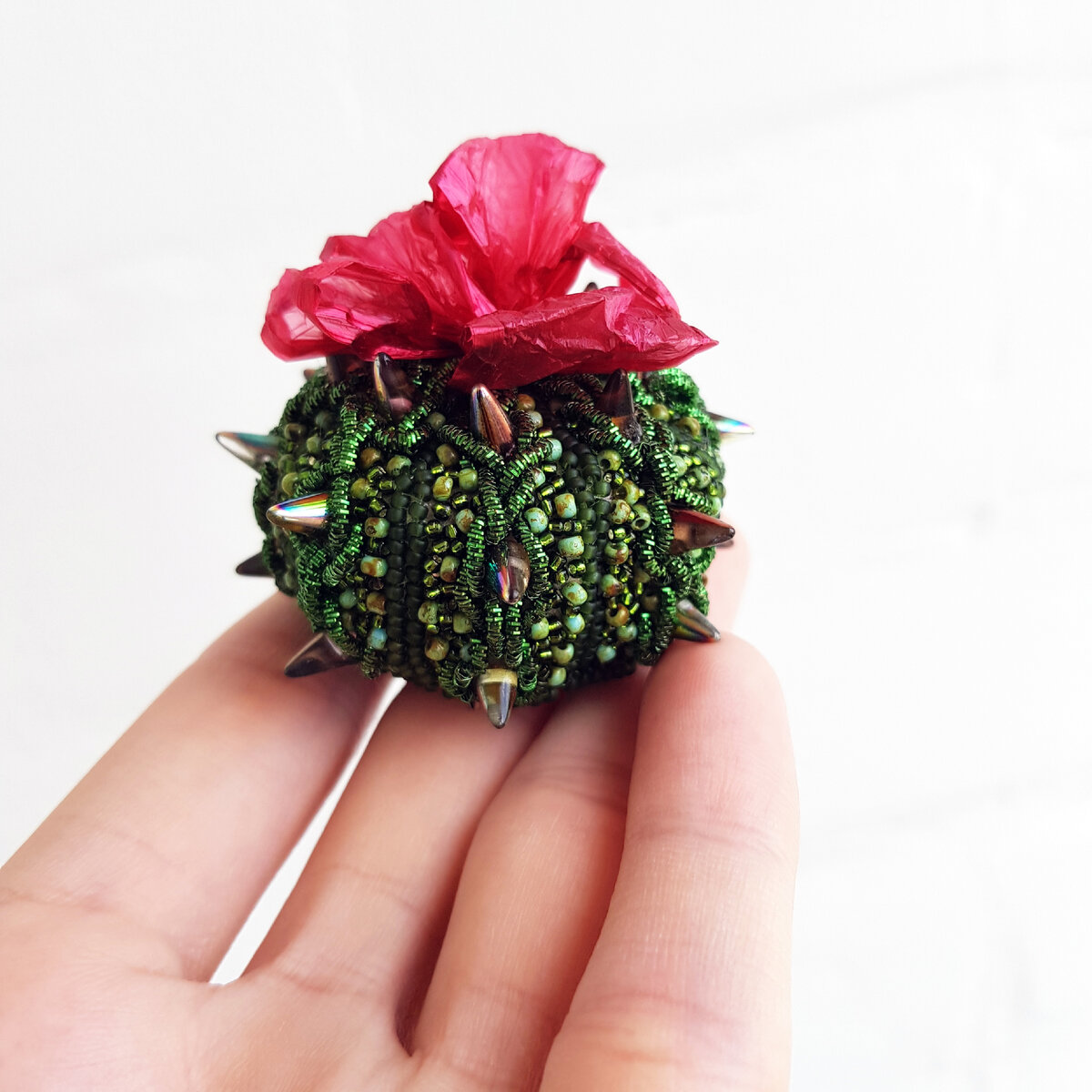 Мастер-класс по вышивке объемной броши в форме кактуса