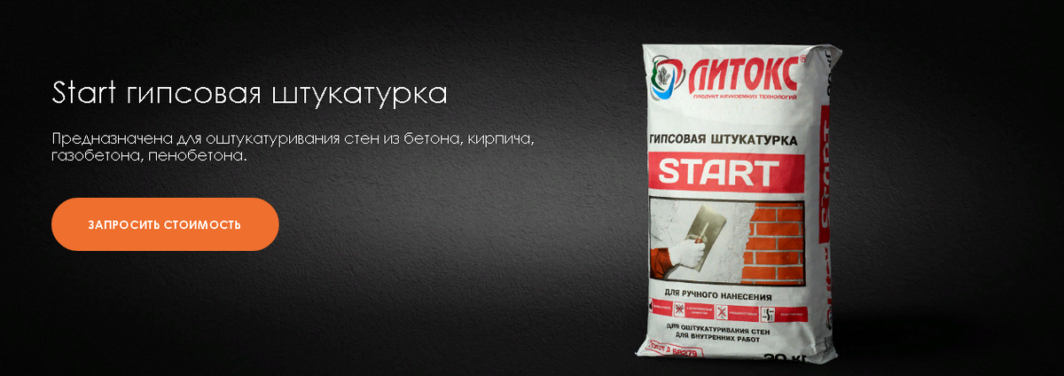 ОБЛАСТЬ ПРИМЕНЕНИЯ Штукатурная смесь START предназначена для оштукатуривания стен из бетона, кирпича, газобетона, пенобетона и других, подготовленных минеральных не деформирующихся оснований, в отапливаемых помещениях с нормальной влажностью. Для ручного применения. Для внутренних работ. Работы проводить при температуре воздуха и основания от +5°C до +30°C. ПОДГОТОВКА ОСНОВАНИЙ Основания должны быть сухими, прочными и очищенными от пыли, грязи, жировых и масляных пятен, отслоений. После очистки, поверхности рекомендуется обрабатывать полимерными грунтовками, в зависимости от типа основания. Для исключения неравномерного схватывания и преждевременной потери подвижности нанесенной смеси, основания необходимо обработать грунтом-концентратом «LITOX PROFF POWER», разведенным водой в соотношениях от 1:3 до 1:8, в зависимости от прочности и впитывающей способности оснований. Для улучшения сцепления штукатурной смеси с гладкими и не впитывающими воду основаниями применяется специальный адгезио