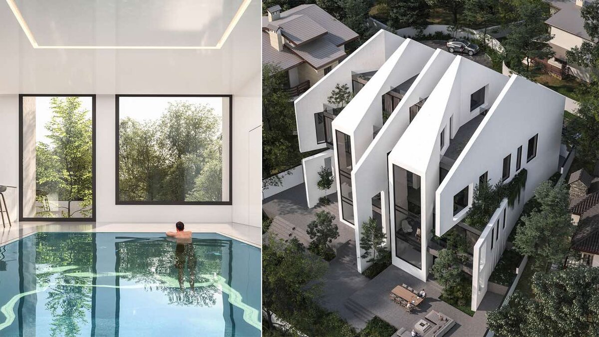 OJAN Design Studio: Layers Villa расположена в районе Хаштгерд в провинции Альборз. Это здание имеет четыре этажа и площадь около 1200 квадратных метров, включая приемную, кухню, столовую, четыре главные спальни, полный набор, спортивные помещения, бассейн, служебные помещения, подсобные помещения и т.д. При первоначальном анализе участка мы поняли, что климатические условия района и окрестностей могут представлять угрозу безопасности и конфиденциальности в этом доме, что было одной из самых важных проблем команды проектировщиков на первых этапах проектирования. Основная идея проекта основана на повороте двускатной крыши на 90 градусов и многослойной конструкции. Пространства проекта определяются между поверхностями и их толщиной, что создает частные пространства с уникальными качествами. Мы рассмотрели наклонную форму слоев не только для типологии и однородности здания в этом районе, но и как ответ на климатические проблемы (неблагоприятный свет и ветер), а также потребность в ощущ