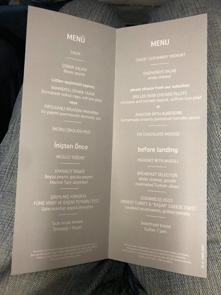 Самолет был нормальный, новый с виду А330-300. Сразу получили меню. Что и как будет предложено в полете. Полетели. Часа через полтора турки засуетились с ужином. Ужин был поприличнее чем в аэропорту в кафе. Курица салат вино и тд. Вино подают у них французское. Как обычно после ужина были фильмы и сон. Разбудили уже над Америкой на завтрак (по турецкому времена). На завтрак подали как обычно, яичницу со всякой всячиной. Все было как всегда вкусно и приятно. Кофе и прочие напитки я не фотографировал за ненадобностью. У турок это обычно и без ограничений. Не аэрофлот.