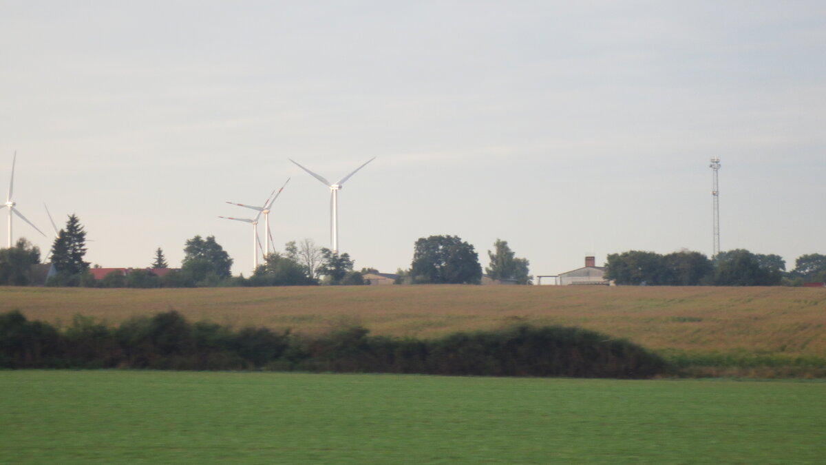 В 7.05 мы выехали из отеля в Польше и вскоре пересекли р.Одер. Сразу бросились в глаза два отличия пейзажа от польского. Первое – полное отсутствие рекламных щитов вдоль дорог. Второе – эти впечатляющие ветряки.