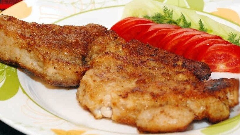 масло сливочное - 55 г. Приготовление: Зачистить корейку от плёнок и сухожилий. Отбить молотком для отбивания мяса Разогреть жир на сковороде. Обжарить. смотреть, чтобы образовалась корочка.