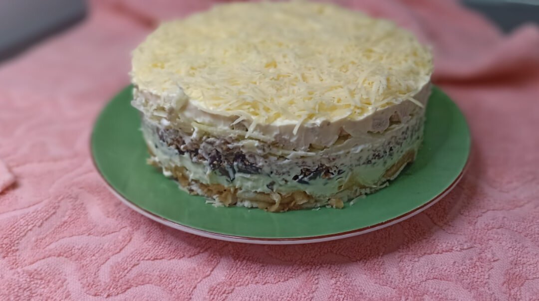 Предлагаю приготовить вкусный салатик с куриной грудкой. Мужу очень понравился, не смотря на то что многие ингредиенты он не особо любит. В майонез добавила зубчик чеснока, что бы получился соус с лёгким чесночным вкусом. Выкладывала слоями 1. Куриное филе кубиками 2. Натертое яблоко Майонез 3. Чернослив 4. Поджаренные и измельчённые грецкие орехи Майонез 5. Яйца на крупной терке 6. Яблоко 7. Куриная грудка Майонез 8. Сыр натертый на средней терке