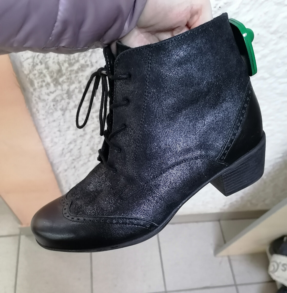 Всем привет. Меня зовут Светлана. Я приглашаю Вас на свой канал, где поделюсь своими покупками, находками и просто интересными вещами, а иногда и нелепыми (на мой взгляд) вещичками. Вот и встретили новый 2023 год. Неделя каникул пролетела незаметно и снова впрягаемся в работу. Моя рабочая неделя началась напряженно: отчеты за прошедший год, начисление аванса за январь по новым правилам... В общем, расслабляться было некогда. Если честно, с нетерпением ждала этих выходных. В субботу был новый привоз в секонд ВоВа. И я, передвигаясь из одного магазина в другой, конечно же заглянула. Выбор в этот привоз очень скудный. В отдел с обувью я не заглядывала давненько: цены там просто космические. Для примера: Вот эти симпатичные ботинки из кожи от немецкого бренда Solidus стоят 5000 рублей Похоже, что они новые. По крайне мере следов носки не наблюдается. Максимальная скидка по зеленому магниту 30% будет в среду. Может они долежатся? Что еще понравилось : это шерстяной кардиган от немецкой т