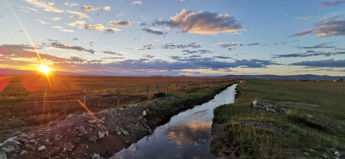 Впереди солнце в отражении реки Калгуты близилось к линии Северо-Чуйского хребта, слева радовал глаз потрясающий пейзаж снежных гор хребта Табын-Богдо-Ола, из-за которого выплывала дождевая туча, уходящая в закат, а под колёсами пролетала техничная грунтовка с мелкими и не очень мелкими бродами. Вот такой выдался последний час сегодняшней езды. Как можно не успеть насладиться пейзажем - мне не понять :))) Я даже не смог отказать себе в видеосъёмке и сделал несколько коротких остановок.