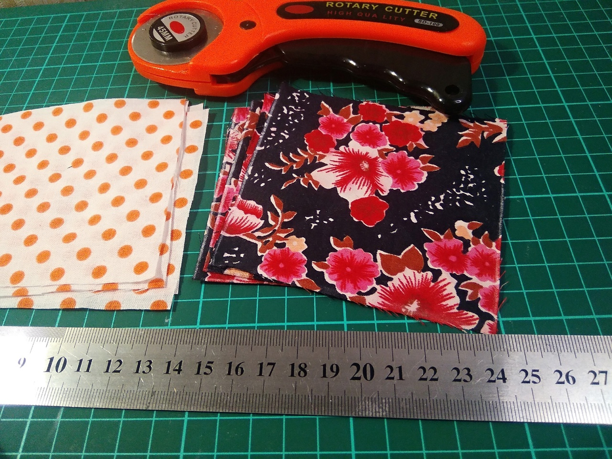 Как всегда вертушку шила из советских материалов. Нужны: По 4 квадрата темных и светлых, роликовый нож, линейка, коврик для резки: Квадраты могут быть любого размера, но должны быть абсолютно одинаковыми. Я использовала квадраты по 10 см кв., но вы можете выбрать свой размер. Цветной, более темный квадрат, складываем по диагонали: Затем еще раз складываем в конвертик так, чтобы все срезы были совмещены: Приметываем сложенный конвертик к правой стороне светлого фонового квадрата. Как приметывать - не принципиально. Можно как у меня иголкой, можно на машинке, но с увеличенным шагом шитья: Повторяем эту операцию со всеми четырьмя квадратами и прикладываем, чтобы проверить правильность направления вертушки: Сшиваем по вертикальному шву верхнюю пару и заглаживаем шов в сторону фона: Аналогично поступаем с нижней парой квадратов. После того, как вертикальные швы сшили, прошиваем горизонтальный шов: Как видите, крылья "мельницы" или вертушки не пришиты: Окончательные размеры блока у меня 18