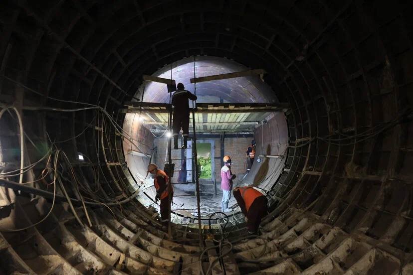 🔹Сейчас идет усиление тоннеля: в стены нагнетаются специальные бетонные смеси
