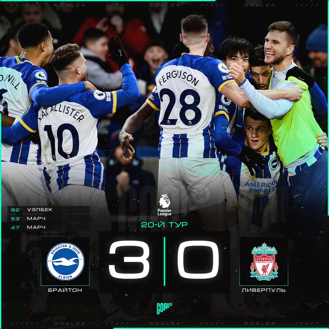 "Брайтон" разгромил "Ливерпуль" со счетом 3:0 в матче Премьер-Лиги