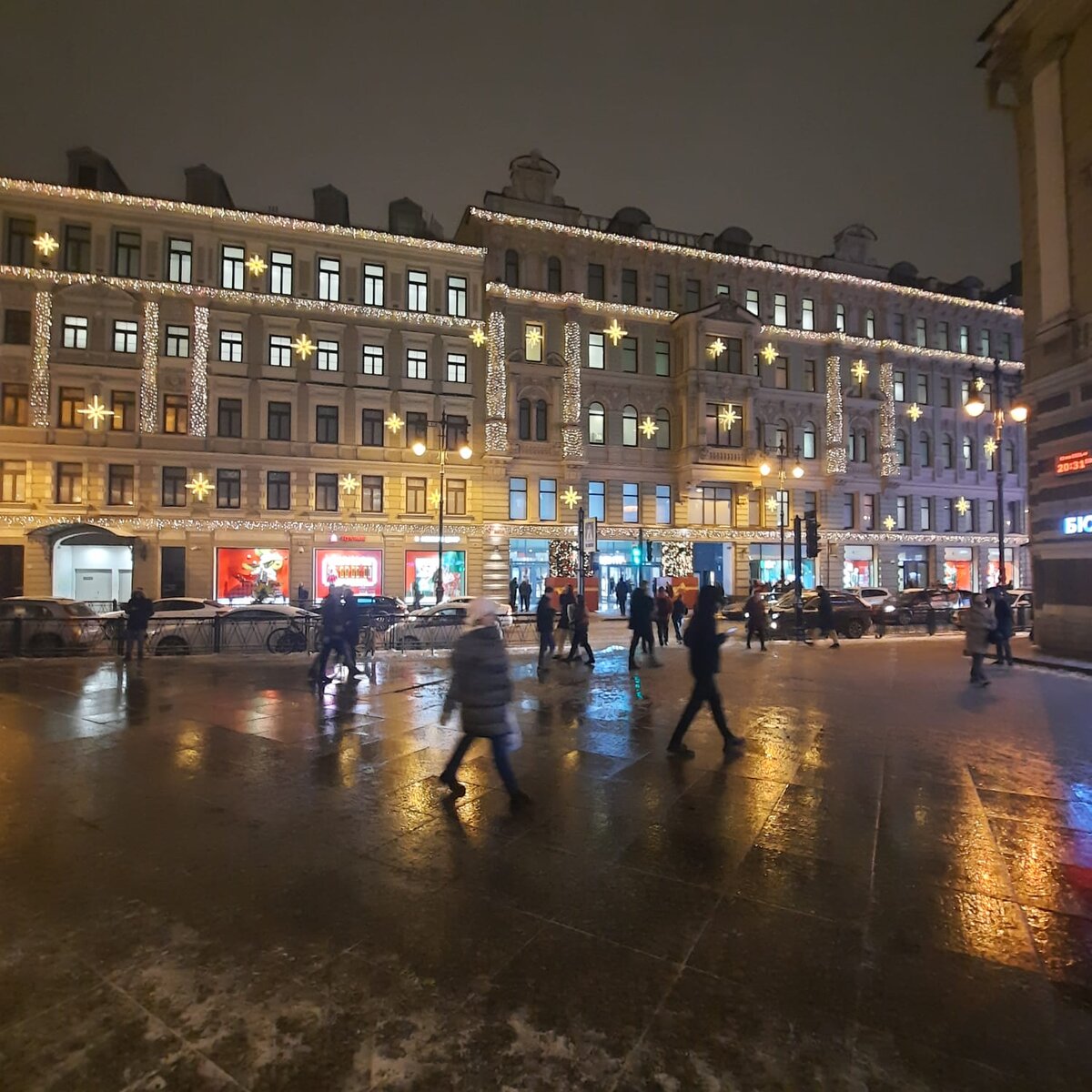 Просто прогулка в поздний вечер у метро Восстания, и несколько снимков зимы в большом городе ..... Вот это станция метро... площадь Восстания ....всё с горящих лучах света .... И рядом вот такая прелестная ёлочка ....ровная и очень красивая.... От неё просматривается вся площадь и виден обелиск Победы .... Какие симпатичные фонари - листочки, очень красивые ... Какая пышечска эта ёлочка Ооооооо! очень яркая.....классно ... Люди гуляют по городу, двигаются то в одну, то другую сторону .... Как ярко высвечены дома....создаёт грандиозность этой красоты .... Виден как весь Невский проспект в огнях ..... это в одну ..... А это в другую сторону ......хотя людей и немного ....сыро и слякотно .... Вот такие красивые светильники ....очень яркие и необычные ..... А по улице бегут машины.....в этом золоте огней.... Красиво украшены дома....так много света....и жёлтого золота ..... Это мы видим фасад Московского вокзала, с башенкой.....и часы на ней..... Такая красота вечера горящих фонарей .....