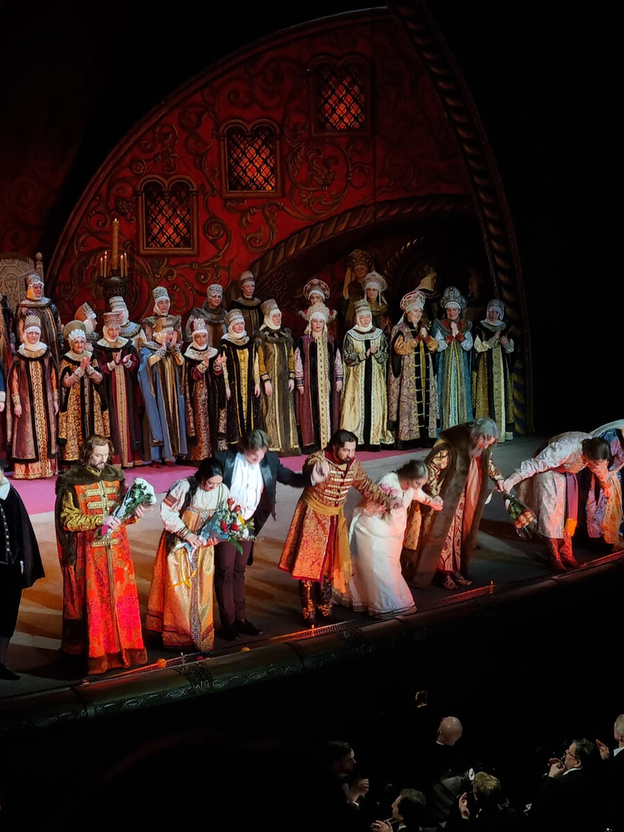 Вчера ходила на "Царскую невесту" в Большой театр (опять) В целом довольна, но это не из тех вещей, от коротых у меня случается восторг. Почти весь спектакль думала, как это можно поставить "на новый лад". Главное впечателние — костюмы. Конечно, это в Большом театре умеют. Шитые золотом кафтаны, жемчужные кокошники, красные сапоги, бархатные пояса, всевозможные женские головные уборы, меха. Даже если бы герои и хор просто ходили по сцене в разных костюмах — этого уже было бы достаточно. Сценография слабее. Понравилась, например, сцена перед монастырем, если бы не хилое дерево, которое стоит перед домом главной героини. Остальные сцены — хоромы разной степени роскошества. Пели, на мой слух, хорошо. Понравились Светлана Лачина (Марфа), Агунда Кулаева (Любаша) и Константин Артемьев (Лыков). Даже моя любимая "Песня Любаши" звучала действительно так, "чтоб за сердце хватало". Правда, Марфа и Любаша казались мне слишком уж похожими. А Марфа не так уж натурально сходила с ума, но пела