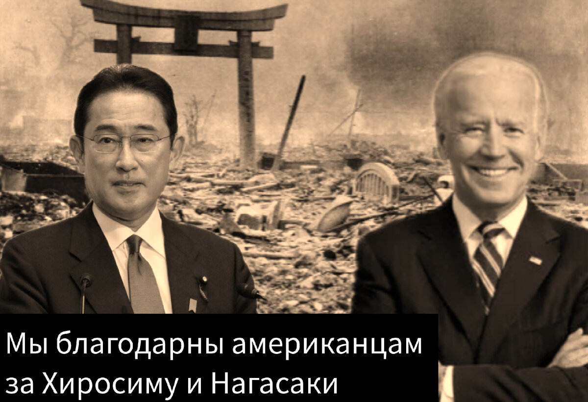 Это такой чудовищный стыд, что не буду даже комментировать паранойю о ядерных планах нашего государства. Вдумайтесь. Глава японского правительства в унизительном верноподданническом экстазе несёт чушь про Россию, предав память сотен тысяч японцев, сгоревших в ядерном костре Хиросимы и Нагасаки. И Кисиде абсолютно наплевать на то, что единственной страной, полноценно применившей ядерное оружие, были США. А её единственной жертвой – его собственная Родина. Ему бы напомнить об этом президенту США и потребовать покаяния, так и не принесённого за этот акт войны американским руководством.